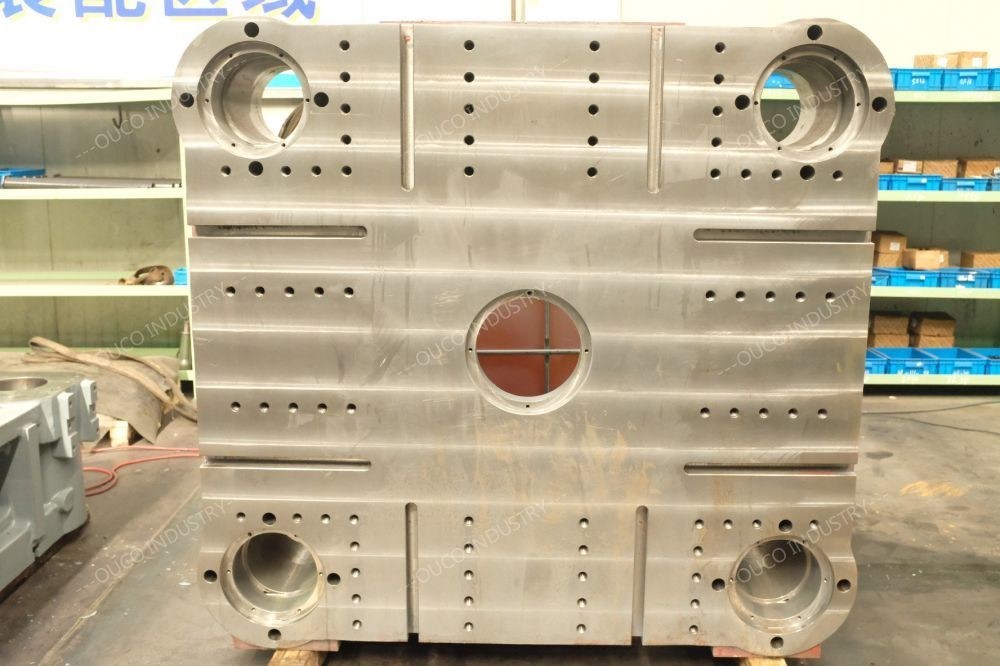 Усиленная стальная пластина и квадратная трубка для баров связи рычага, втулки и platen машины усиленных рамкой изготовлены от хода отверстия и выталкивателя прессформы высокой отметки стального более длинного и platen более сильной силы отстрела двигая используя втулку смазки свободную